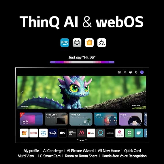 Equipped with the updated WebOS 23 platform, the LG C3 offers an intuitive and user-friendly interface. It’s fast and responsive, with a variety of apps and streaming services like Netflix, Apple TV, and Disney+. The inclusion of features like voice control and smart home integration enhances its utility, making it more than just a TV.